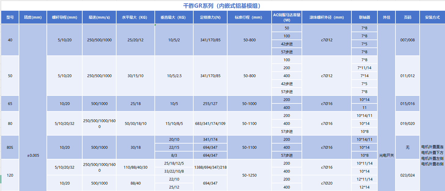 千舴GR40模组根据不同导程(5mm、10mm、20mm)细分性能表现,灵活满足不同工况需求:
