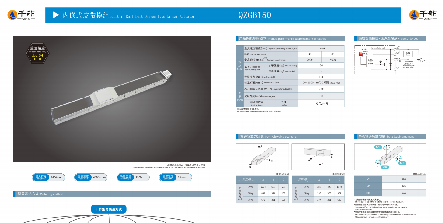 在实际的设备选型中需综合考虑行程、负载、速度、精度、电机驱动方式、安装方式及运行环境等多个因素,以确保设备性能符合实际需求。行程指的是模组可移动的最大距离,千舴内嵌式模组的行程范围可定制,一般在50mm至2000mm之间,支持特殊行程定制。不同应用场景下,直线模组需要承受不同的负载。千舴传动的内嵌式模组采用高强度材料和优化结构设计,可承受从几公斤到上百公斤的负载。运行速度取决于丝杠导程、驱动电机、减速比等因素。一般来说,丝杠导程越大,速度越快,但精度相对较低。精度通常由重复定位精度、运行平稳性、背隙补偿等指标决定。千舴内嵌式模组采用高精度滚珠丝杠和直线导轨,重复定位精度可达±0.01mm。支持伺服电机和步进电机两种驱动方式。